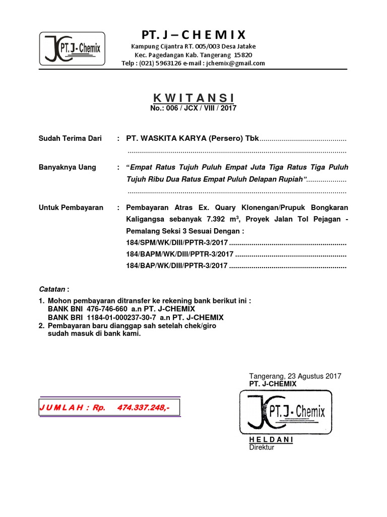 Kwitansi Pt / Kwitansi Mellidotorg. Umumnya, kwitansi hanya bisa dikeluarkan saat proses pembayaran telah berlangsung dan barang atau jasa telah dalam praktiknya, kwitansi masih disalahpahami oleh sebagian besar orang. Selain itu, biasanya transaksi diberi materai dengan ketentuan. Kwitansi dapat menjadi tanda bukti transaksi yang memiliki kekuatan hukum. Como carrego o cartão de jogador? Kwitansi tertua yang pernah ditemukan adalah berupa sepotong tanah liat dengan ukuran sekitar satu inci kali.